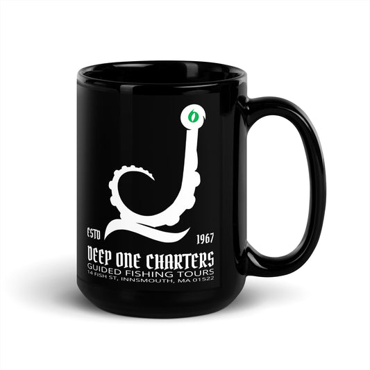 Innsmouth Fishing Tours Cthulhu Lovecraft Schwarz glänzende Tasse