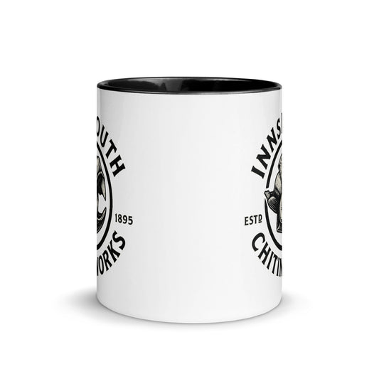 Innsmouth Chitin Works – Vintage-Tasse mit monochromem Logo und farbiger Innenseite