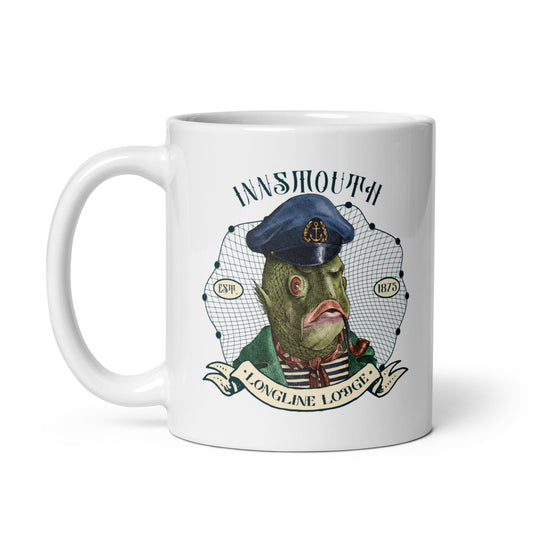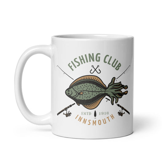 Innsmouth Fishing Club Lovecraft Weiß glänzende Tasse