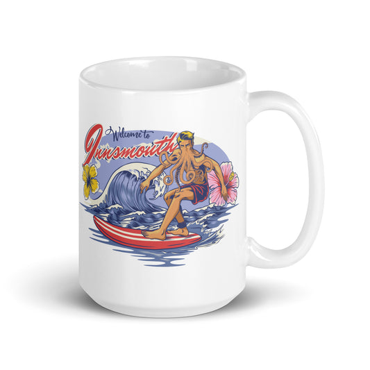 Innsmouth Surfing Lovecraft Weiß glänzende Tasse